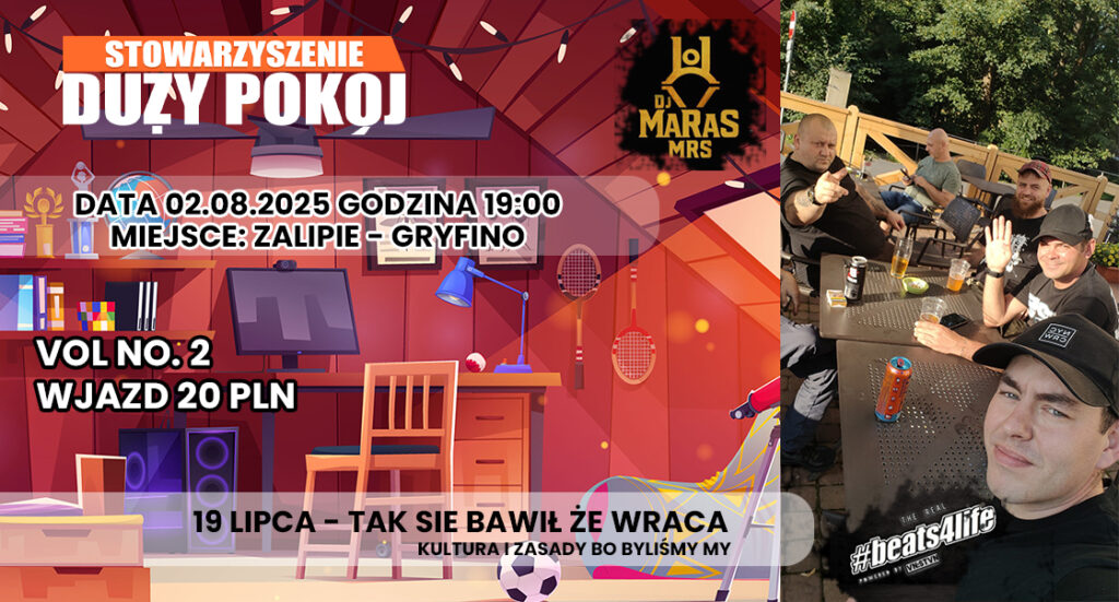 Dobra nie ma co owijać w bawełnę. Za kilka dni 02.08.2028, to będzie w Zalipiu znów. Grane w ramach akcji „Duży Pokój” zagra DJ MaRaS Balety jak za dawnych lat[…]